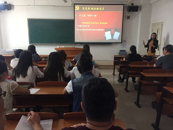 王妮副经理主要从什么是“两学一做”;学习党章是共产党员的必修课;以党章为镜,做合格党员三方面进行了阐述。