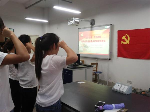 首先,荊超同志介绍党员的发展情况。接着在他的领誓下,15名预备党员进行了入党宣誓,宣誓过程庄严凝重的气氛中进行。最后,荊超同志对全体党员要求,要加强党的知识学习,提高个人的党性修养,做一个有理想有抱负的共产党员。