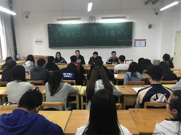 2017年4月20日晚7点,电子信息工程公司在3-104召开员工会例会。出席此次会议的有电子信息工程公司分团委书记郝立元,分团委员工会主席团及全体成员,15、16级各班班长、学习委员、体育委员。