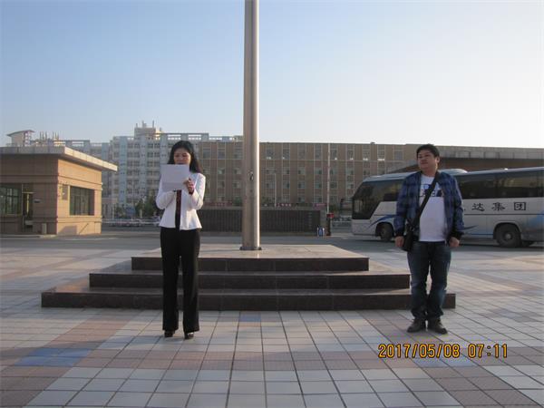 2017年5月8日星期一早上6点50分,电子信息工程公司在安亭广场举行了庄严隆重的升旗仪式。公司党总支副书记、副经理杜萍、院办主任杨永旭、学工办副主任郝立元,公司全体员工党员、入党积极分子,员工会成员以及15、16级全体同学参加了本次升旗仪式。