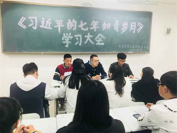 会上,陈老师就校团委安婧副书记组织的“共青团3377体育网站网页学习《习近平的七年知青岁月》座谈会”上的会议精神给同学们做了传达,陈老师说到:习近平总书记在梁家河的7年知青岁月无疑是总书记人生经历中十分重要的起点;在学习这本书时,能切实感受到习近平总书记在深处困境时,仍能够做到对乞食老汉“解衣推食”,习近平总书记的精神值得我们深入学习,切身感受其中的意义所在;副主席宋国民就《习近平的七年知青岁月》发表了自己的认识,并分享了自己的读书心得;17级电子信息工程(2)班团支书冯海亮分享自己的学习心得。