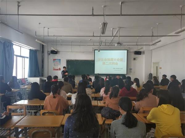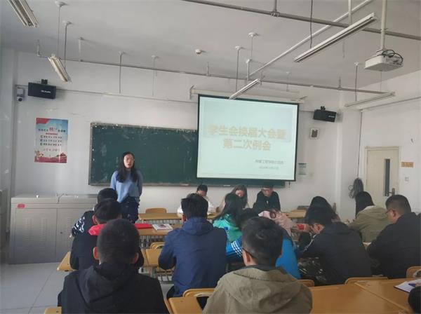 2018年10月11日中午,3377体育分团委员工会在综合楼504教室召开员工会换届大会。出席此次会议的有公司党总支副书记宁学君、副经理杜萍、学工办副主任郝立元、分团委负责人梁红博老师、上一届分团委副书记赵宇汝、员工会主席郭浩伟以及全体员工会成员。会议由郭浩伟同学主持。
