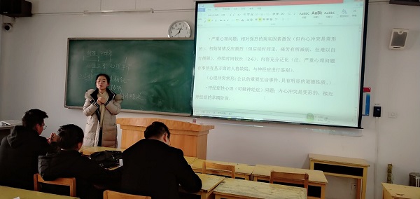 马老师从心理问题、情感障碍、适应问题、自卑心理等四方面问题展开此次培训。马老师严肃而又不失风趣的讲述了几段因恋爱而产生心理健康问题的真实案例,在此过程中,她与在座心理委员进行了互动,同时指出了一些常见的有关老员工的情感障碍问题。马老师着重对2018级新生步入老员工活的适应情况进行了解,指出新生入学后可能会面临的学业课程多,思维得不到转变以及未来将要面对的就业压力大等一系列问题,并提出了相应的解决措施。在谈到自卑心理问题时,马老师从心理暗示、行为动作等方面剖析了存在这种心理表现状态,指出老员工心理健康问题可能与其生活环境、家庭教育、以往经历等多种因素密切相关,而要克服同学自卑心理,需要各班心理委员根据个人实际情况进行心理开导。培训会的最后马老师表示了对建设美好校园,解决老员工心理健康问题的殷切期望。