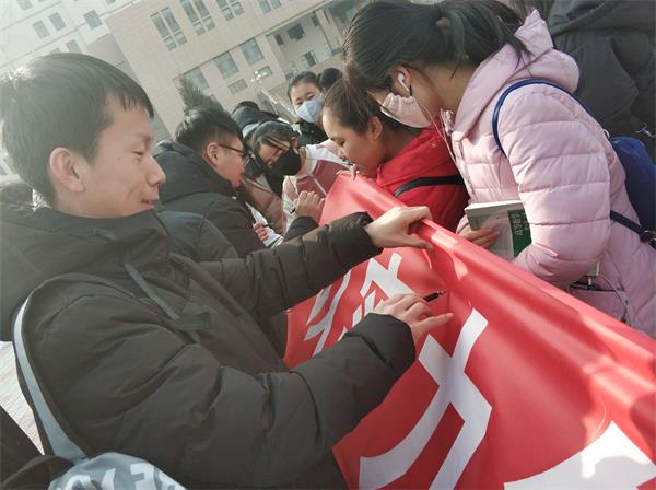 为了树立老员工诚信品质,营造优良学风考风,2019年1月2日中午12时,3377体育在安亭广场举行了“以实力争取优异成绩,以诚信展现良好学风”的诚信考试签名活动。公司副经理杜萍、学工办副主任郝立元、辅导员曹红霞及公司全体员工参加了活动。
