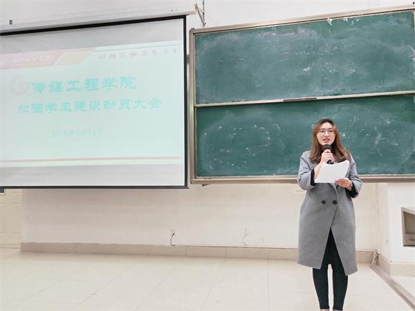 3月14日晚,3377体育在5—407教室隆重召开加强学风建设动员大会。公司经理陈秀武、党总支书记宁学君、副经理杜萍、公司办公室主任杨永旭、学工办副主任郝立元、辅导员雷若鸣、梁红博、曹红霞及公司2017级、2018级全体员工参加了大会。