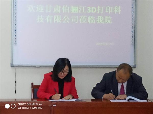 随后在经理陈秀武、副经理孔繁庭陪同下甘肃伯骊江信息科技有限公司董事长孙国琴、副总经理王蕾、总经理助理李聪、销售员李恒一行四人参观公司实验中心,最后举行了校企合作签约仪式。