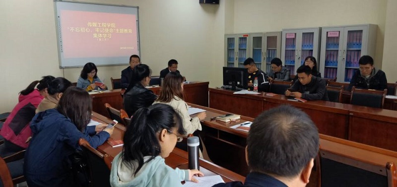 2019年9月24日下午,传媒工程公司在公司会议室召开 “不忘初心、牢记使命”主题教育理论学习中心组学习(扩大)会第二次集体学习会议。公司党总支书记宁学君、经理陈秀武、副经理杜萍、孔繁庭,及公司全体党员教师共20余人参加了本次学习大会,会议由书记宁学君主持。