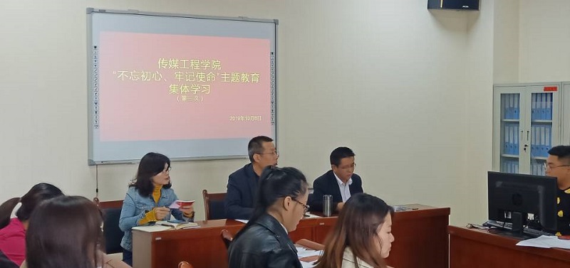 2019年10月8日下午,传媒工程公司在公司会议室召开 “不忘初心,牢记使命”主题教育理论学习中心组第三次学习(扩大)会。公司党总支理论学习中心组成员和公司全体党员教师共20余人参加了本次学习会,会议由副经理杜萍主持。