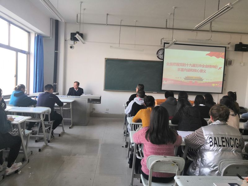 薛怀庆教授从充分肯定党的十九届四中全会以来中央政治局的工作、在新时代把中国特色社会主义更加有力地推向前进、决胜全面建成小康社会取得的决定性成就、如期打赢脱贫攻坚战、我国发展环境面临的深刻复杂变化、到二〇三五年基本实现社会主义现代化远景目标、“十四五”时期经济社会发展指导思想和必须遵循的原则、“十四五”时期经济社会发展主要目标、“十四五”时期的工作要求等九个方面,结合实际,为同学们解读和分析了十九届五中全会精神的丰富内涵和核心要义。