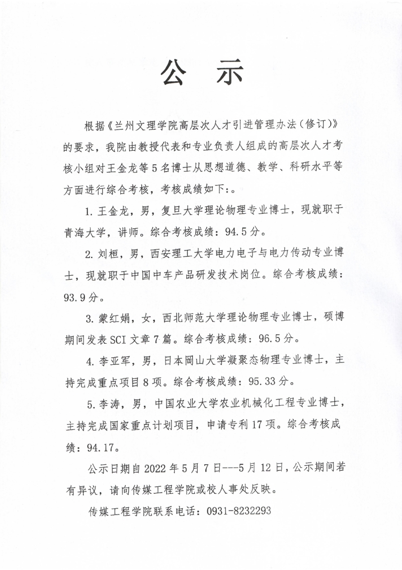 关于3377体育博士人才引进面试结果的公示