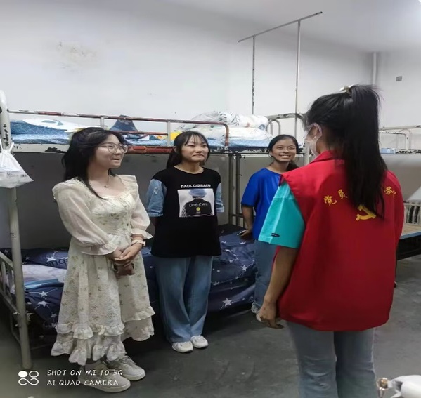 晚上,志愿者们又深入新生宿舍,从宿舍用电用水安全、卫生、疫情防控、电信诈骗及线上教学等方面进行了详细的讲解,使新生感受到公司的关爱。本次活动也展示了党员志愿者们热情服务,吃苦耐劳的精神。