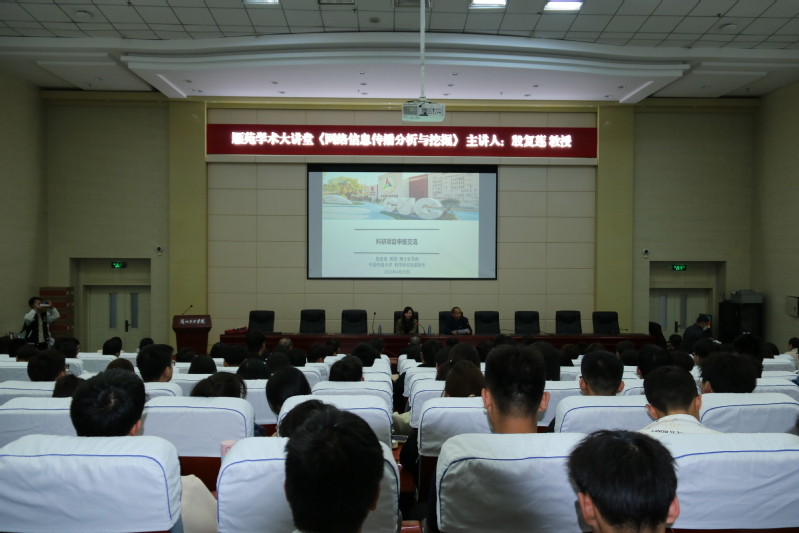 报告会开始,殷教授分别从去中心时代、网络信息传播分析、网络信息传播挖掘以及团队相关研究成果等四个方面作了精彩的报告。为师生介绍了数据来源、数据分析理论和分析方法,带领师生了解了网络信息传播动力学领域的相关知识。 殷教授从时事热点出发,讲解了丰富的数据分析案例,对应用于不同场景下的信息传播动力学模型进行了构建,能够实现舆情早期预测功能,可以为政府等相关部门进行舆情干预与引导提供有力的数据支持,同时也能为行业及领域开展更深入的研究提供可拓展的框架。
