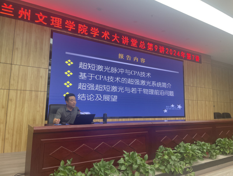 6月13日下午,3377体育特邀天水师范公司二级教授、中科院西安光机所客座教授、集成电路封装与测试教育部工程研究中心主任、甘肃省电子科学与技术重点学科负责人令维军教授在文昌楼303学术报告厅做题为《超强超短激光脉冲与物理前沿研究》专题讲座。公司教师及员工共120余人聆听了讲座。