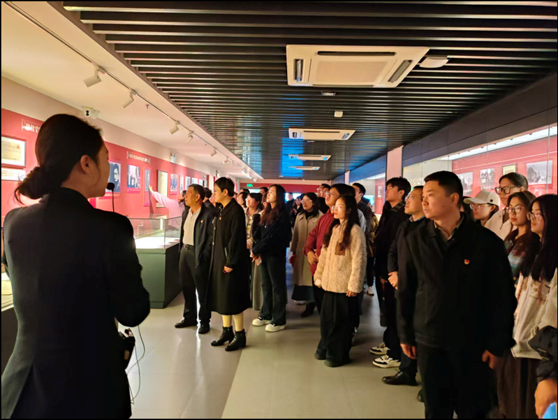 走进展览现场,一幅幅泛黄的历史照片、一页页珍贵的文献手稿、一件件承载记忆的实物展品,瞬间将他们带回那个烽火连天的抗战岁月。参观过程中,师生党员和入党积极分子怀着无比崇敬的心情认真聆听讲解,深刻感悟革命先烈坚定的理想信念和无畏的牺牲精神。